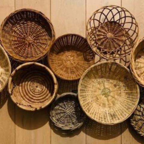 Hasil kerajinan warga berupa tampah, bakul, dan tempat buah dari bambu. Estetis dan fungsional.